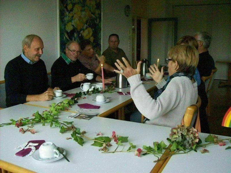 Anschließend haben wir zusammen alte Fotos in einer Präsentation (“Diashow”) angesehen. In den 15 Jahren waren wir sehr aktiv. Wir haben viel zusammen erlebt: Ausflüge und Feiern, Vorträge und Bastelaktionen.