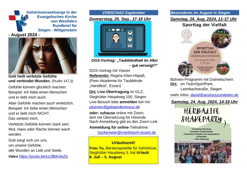 : 16 Uhr inklusiver Nähtreff, 19 Uhr inklusives Gebärdencafé