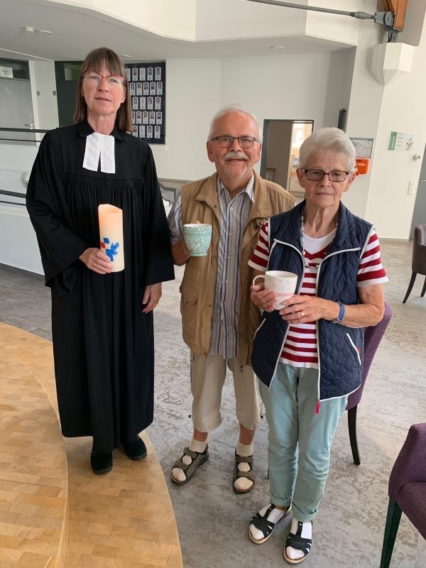 Im Gottesdienst im Evangelischen Gemeindehaus in . Über 20 Jahre war Werner Grzegorz als Gemeindesprecher auch Ansprechpartner für die Gehörlosengemeinde in Lippstadt. Pfarrerin Heidi Bunse-Großmann dankte ihm für seine Mitarbeit und überreichte ihm eine Tasse mit einem Segenswort. Seine Frau, Monika Grzegorz, übernahm nun das Gemeindesprecheramt und freute sich über das Vertrauen der Gemeinde. Auch sie bekam einen Segensgruß übereicht. Monika Grzegorz nahm auch schon am 17.08. an der Gemeindesprecherversammlung teil. Es war ein guter Anfang und schnell gab es viele Kontakte.