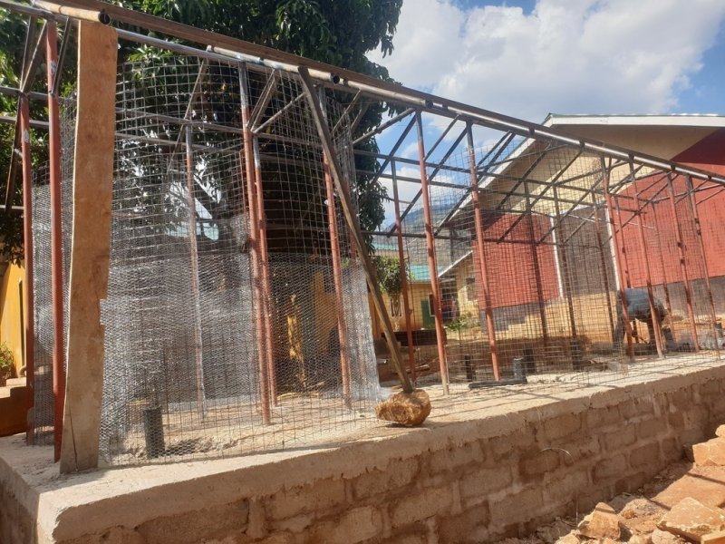Fleissige Hände bauen neue Toiletten. Direkt neben den Schlafhäusern.