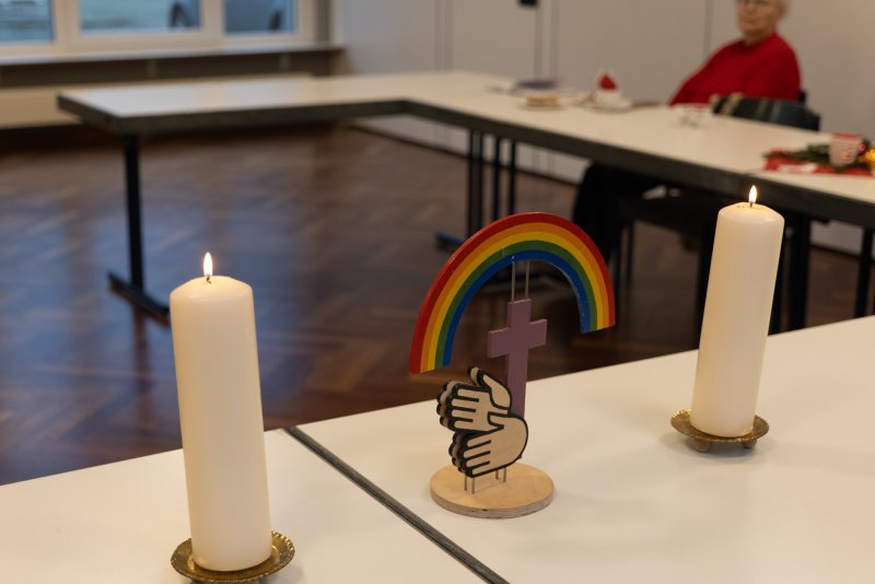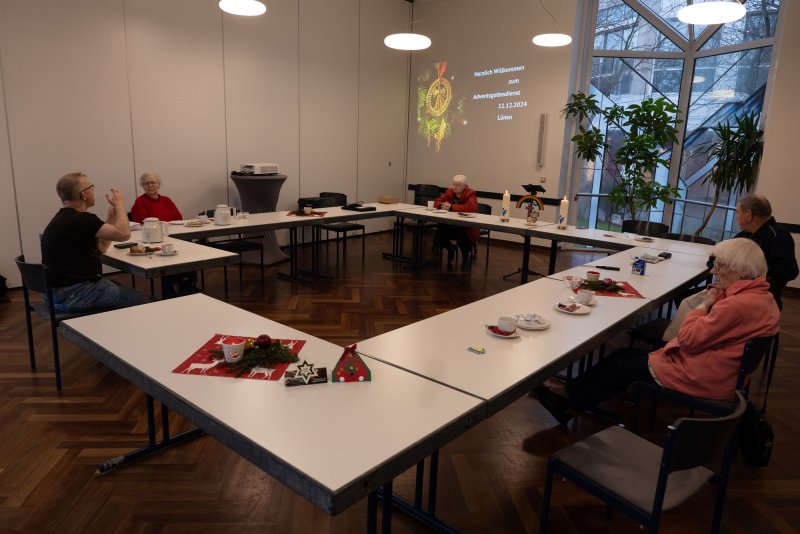Am 10.12. traf sich der Mittwochstreff in Lünen zu seiner Adventsfeier. Für ein gemütliches Kaffeetrinken hatte Pfarrer Hendrik Korthaus Christstollen, Lebkuchen und anderes leckeres Weihnachtgebäck im Gepäck. Natürlich wurde ein vorweihnachtlicher Gottesdienst gefeiert. Die Gebärdenlieder und Bibeltexte handelten alle vom Licht. In der Predigt wurden kleine Diskokugeln verteilt. Ein Zeichen wie wir Menschen das Licht Gottes reflektieren und so weitergeben können. Das Losungsbuch 2025 wurde als Weihnachtsgeschenk ausgeteilt. Die Gemeindesprecher erhielten auch einen Fotokalender als Dank für ihre fleißige und treue Mitarbeit. Nach dem Gottesdienst zeigte Benny Dyga viele schöne Bilder aus Thailand und erzählte spannend von seiner Reise