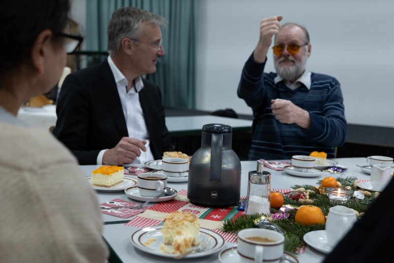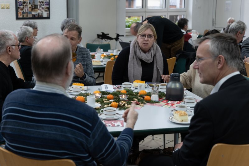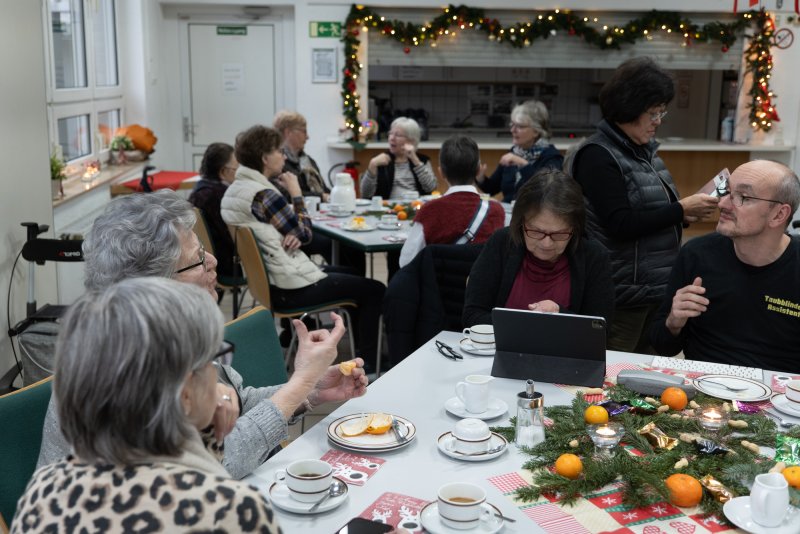 Da der Ökumenische Gottesdienst der Gehörlosengemeinde Recklinghausen und die Weihnachtsfeier des vestischen Gehörlosen Vereins genau auf den 13.12 fiel, also dem Tag, an dem in den skandinavischen Ländern, besonders in Schweden das Lucia-Fest gefeiert wird, stellten Pastoralreferentin Monika Prillwitz und Pfarrer Hendrik Korthaus diese Lichtbringerin in den Mittelpunkt des Gottesdienstes. So wie sie das Licht der Weihnacht zu den Menschen bringt, können auch wir das göttliche Licht zu den Menschen bringen. Entweder indem wir selber leuchten oder das Licht der Weihnachtsbotschaft wie ein Spiegel reflektieren und so Licht in die Dunkelheit der Welt bringen. Kleine Spiegelkugeln erinnern uns daran. Außerdem wurden die Losungen 2025 an alle Besucher verteilt. Als Dankeschön für ihre tolle Unterstützung bekamen die Gemeindesprecherinnen einen selbstgestalteten Fotokalender übereicht. Nach dem Gottesdienst gab es natürlich Kaffee und Kuchen. Nach gebärdensprachlichen Austausch wurde ein leckeres Abendessen serviert.