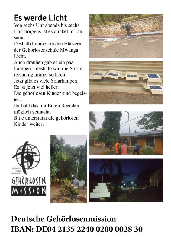 Deshalb brennen in den Häusern der Gehörlosenschule Mwanga Licht.