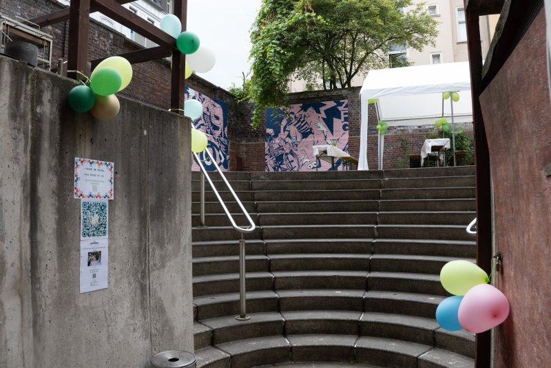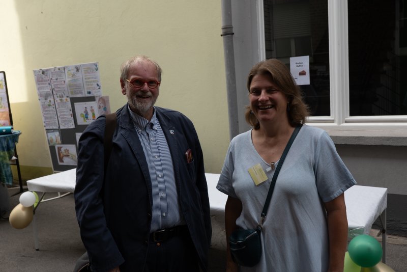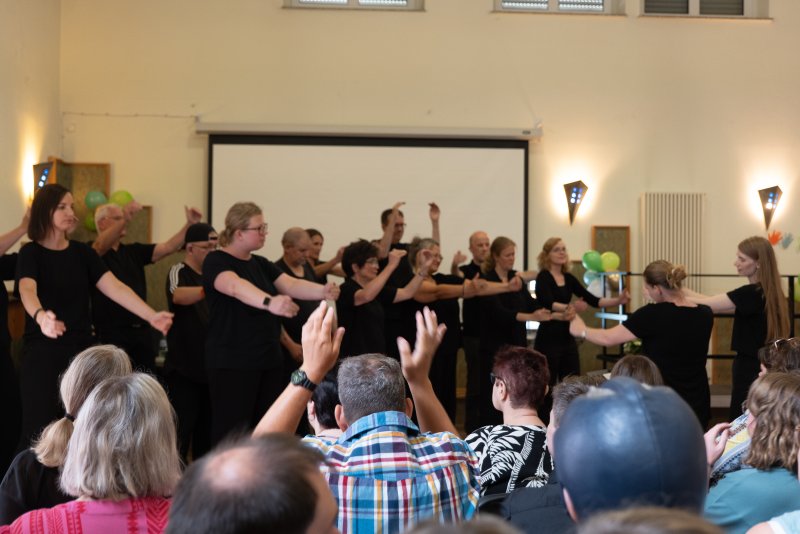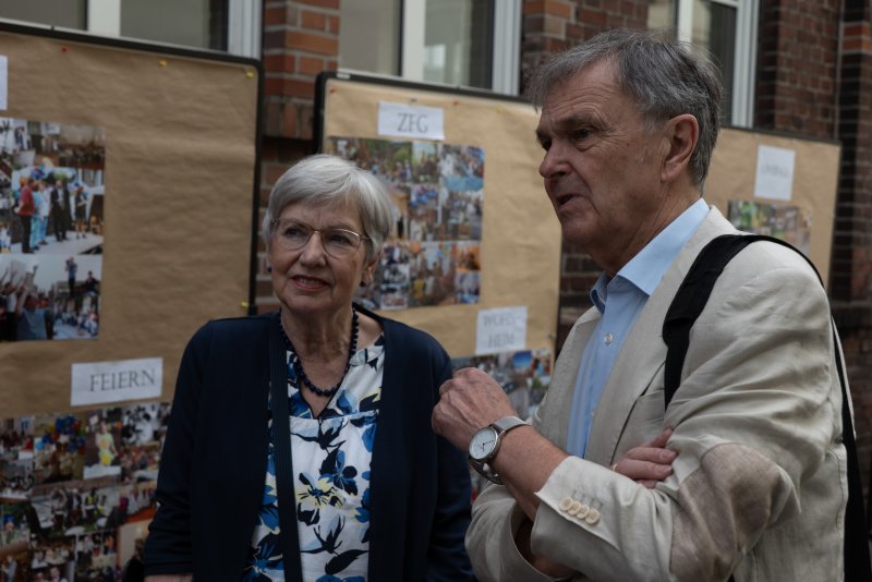 Am 5.juli wurde an der Huckarder Straße gefeiert. Das ZfG beging 40jähriges Jubiläum Und so wurde man schon beim Betreten des Geländes im Unionviertel mit einer Ausstellung zur Geschichte und Gegenwart des Zentrums empfangen. Neben Vertreterinnen der LWL-Schule und des LWL-Internats waren auch der ehemalige Leiter Joachim Welp und die Eheleute Pufhahn als Gründer des Fördervereins angereist. Ulrich Pufhahn erzählte zusammen mit Edgar Brandhoff aus der Geschichte des ZfG. Die heutige Leitung Claudia Dräger und Julia Kringe gaben einen Ausblick auf die weitere geplante Entwicklung. Nach einem Grußwort des Leiters des Sozialamtes Dortmund Michael Gonas trat der Gebärdenchor „Sing a Sign“ aus Emsdetten auf. Der bekannte gehörlose Künstler Dodzi Dougban brachte den ganzen vollen Saal zum Tanzen. Bei schönem Sommerwetter und köstlicher Verpflegung wurde mit Blick auf Grafiti-Kunst, gestaltet von Schülerinnen und Schülern der Realschule, noch lange von den vielen Besucherinnen und Besuchern gefeiert. Auch Pfarrer Hendrik Korthaus gratulierte und bedankte sich bei Claudia Dräger stellvertretend für das ganze Super-Team des Zentrums für die lange und großartige Zusammenarbeit zwischen ZFG und Gehörlosenseelsorge