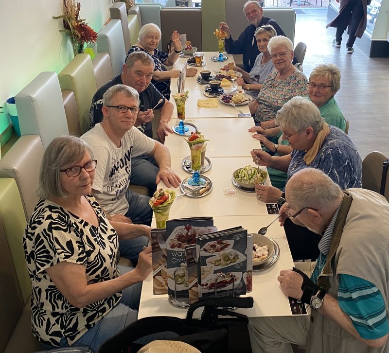 Zwar gibt es auch in Lünen keine Dolomiten und leider noch nicht einmal ein Eiscafé Dolomiti, aber andere schöne Eiscafés. Nach dem Gottesdienst zum Thema „Unterwegs unter Gottes Segen“ machte sich die wegen des heissen Wetters kleine Gemeinde bei 36ºC auf den kurzen Weg in die benachbarte Eis-Factory. Bei tollen Eisbechern oder Kaffee und frischen Waffeln sassen alle bei angeregter Gebärdenkommunikation lange zusammen