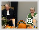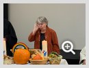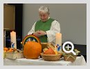 Am 10. Oktober war es wieder so weit: Der Vestische Gehörlosenverein feierte Erntedank. Das Treffen begann wie üblich mit einem ökumenischen Gottesdienst. Der Altar war voll mit Erntegaben wie Kürbissen, Kartoffeln und Clementinen. Dazwischen lagen aber auch Schokoladentafeln. Diese wurden während der Predigt verteilt. Natürlich bedankten sich alle dafür. Und so entstand die Frage: Wenn wir uns für ein so kleines Geschenk artig bedanken, wofür sollten wir Gott eigentlich danken. Hat er uns nicht viel mehr geschenkt: Kleidung, Essen und Trinken und auch Gemeinschaft, Freundschaft und Menschen, denen wir vertrauen können. Die Gehörlosenseelsorger Pastoralreferentin Monika Prillwitz und Pfarrer Hendrik Korthaus wurden durch Laienprediger Detlef Gersmann, Gemeindesprecherin Helga Grzelka und Gemeindesprecher Herrmann Riekötter sowie die Mitarbeiterin Brigitte Raulfs tatkräftig unterstützt. Dafür vielen Dank! Nach leckerem Kaffee und Kuchen fand im VGV anschließend die traditionelle Verlosung statt