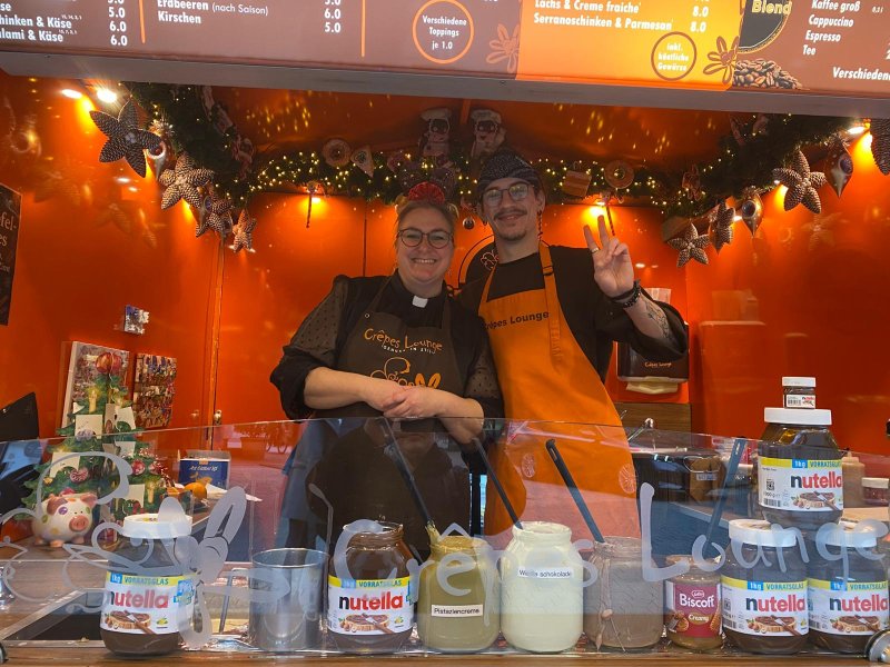 Für jeden verkaufte Crêpes spendete die Chefin 50 Cent. So kamen mit der Kollekte und den Einnahmen 400 Euro Spenden für die Gehörlosengemeinde Herne zusammen.