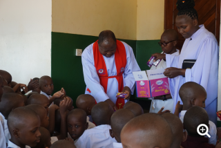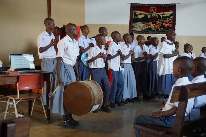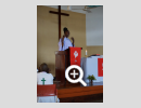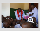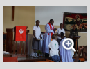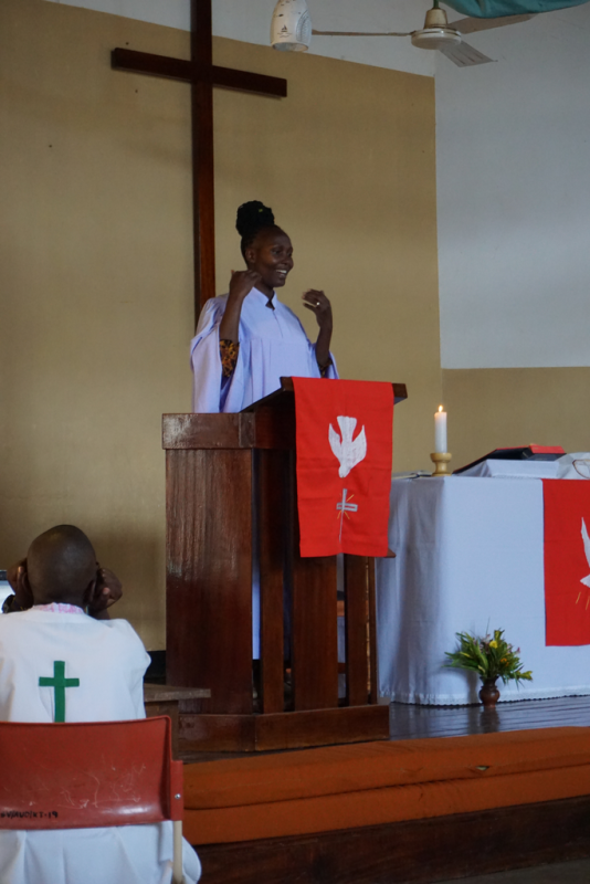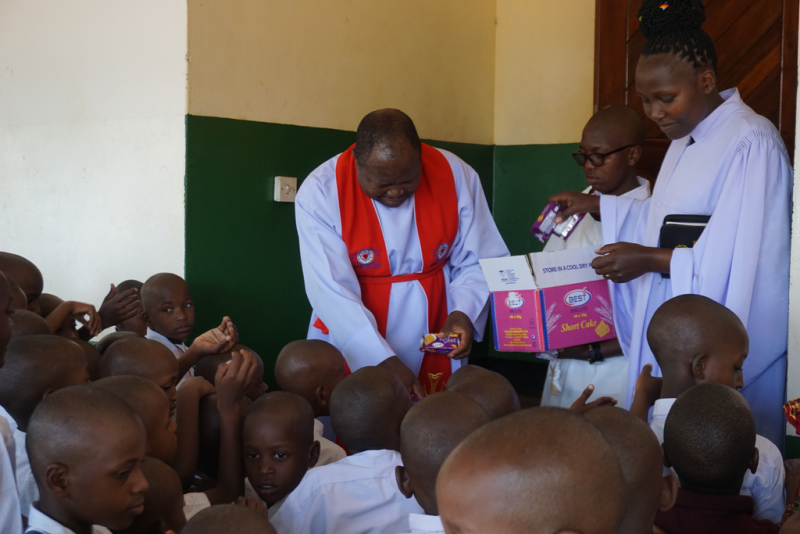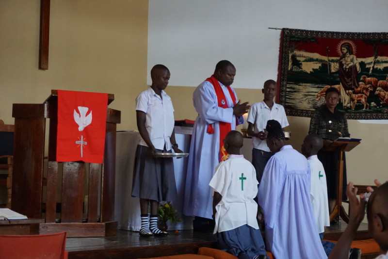 Am 26. Oktober feierte die Gemeinde in der Gehörlosenschule in Mwanga einen Festtag: Den Tag des Kindes. Da macht nicht nur der gehörlose Pfarrer Enock Meyasi den Gottesdienst alleine. Die Theologiestudentin Lighteness Tarimo aus der Bibelschule Mwika unterstützt ihn. Sie kann gut gebärden. Es ist wirklich ein schöner Gottesdienst. Der Gebärdenchor der Schule singt zweimal und einmal zitieren die Schüler Bibelstellen. Auch das Abendmahl wird ausgeteilt. Da ist auch Daniel dabei. Er ist in der 6. Klasse. Da Daniel Kirchenältester ist, bekommt er es auch ausgeteilt. Denn das Abendmahl bekommen hier nur besondere Personen: Der Pfarrer, die Theologiestudentin und die Kirchenältesten. Und nach dem Gottesdienst gibt es für alle Kinder Kekse. Die Freude ist allen anzusehen. Und das Beste kommt zum Schluss: Es gibt ein gemeinsames Festmahl: Pilau mit Hühnchen und einer Soda. Die Kirche hat für diesen Tag der Schule etwas gespendet.