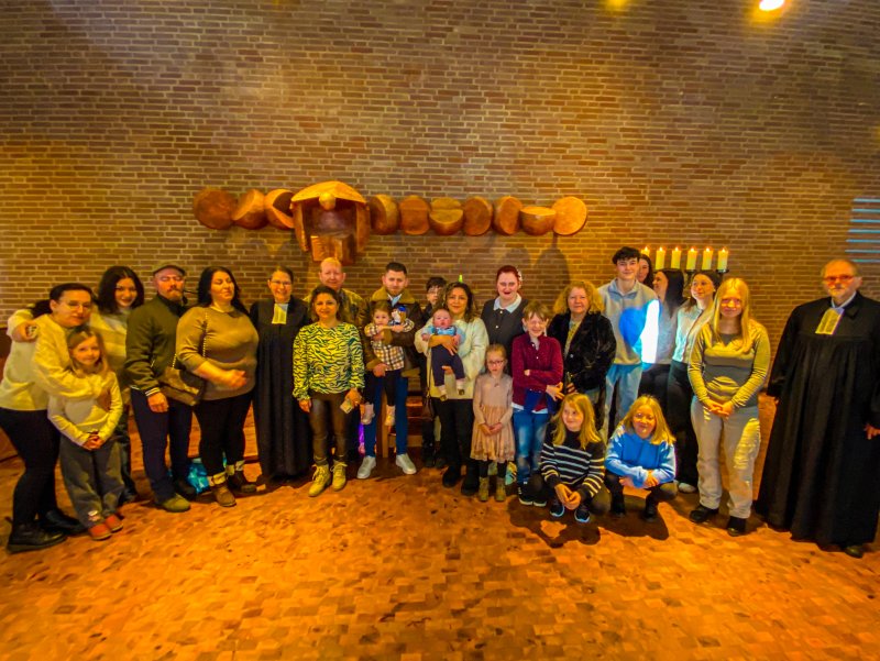 Da seine Mutter und auch einige der Paten und Angehörigen gehörlos sind, wurde dieser bunte Gottesdienst zweisprachig gefeiert. Pfarrerin Sabine Bärenfänger erzählte zusammen mit vielen Kinder die Bibelgeschichte von der Stillung des Sturmes durch Jesus und hatte schöne Bewegungslieder mitgebracht. Gehörlosenseelsorger Pfarrer Hendrik Korthaus dolmetschte den Gottesdienst in Gebärdensprache und gebärdete mit hörenden und gehörlosen Erwachsenen und Kindern Gebärdenlieder. Die vierte Taufe der Familie Hobbs wurden nach dem Segen im Gemeindehaus lebhaft gefeiert.