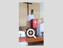 Die Theologiestudentin Lighteness Tarimo aus der Bibelschule Mwika unterstützt Pfarrer Enoch. Sie ist hörend – aber sie kann sehr gut gebär-den.