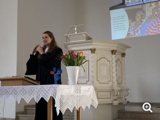 In der Predigt ging es um den Bibelvers zum Weltgebetstag (WGT) der Frauen 2026. In diesem Jahr kommt das Thema aus dem Land Nigeria. Es ist ein Satz von Jesus Christus: Kommt! Bringt eure Last!
