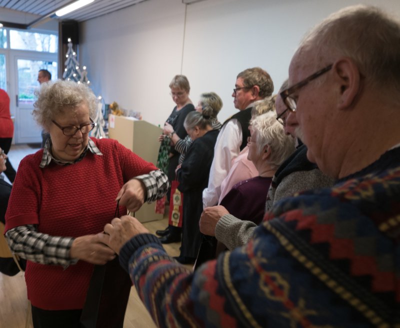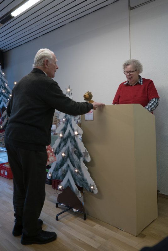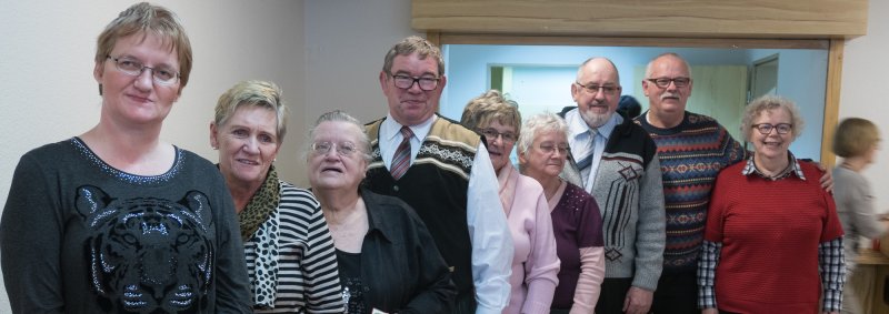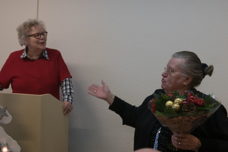 Nicht nur das 35 jährige Jubiläum konnte die Altenstube in Dortmund dies Jahr feiern, sondern es gab auch eine sehr schöne Adventsfeier. Der Vorsitzenden Brigitte Würfel wird herzlichst mit einem Blumenstrauß für ihre emsige Arbeit gedankt. Sie wiederum ehrte die Jubilare und dankte den fleißigen Mitarbeiterinnen und Mitarbeitern. Für alle Besucher gab es ein schönes Weihnachtsgeschenk. Nach dem sehr schmackhaften Mittagessen fand eine Tombola mit vielen Gewinnen statt. Mit Kaffee und Kuchen klang der Tag aus, aber nicht bevor Pfarrer Hendrik Korthaus allen ein frohes Fest gewünscht hatte. In seiner Ansprache erklärte er den Zusammenhang zwischen Kreuz und Krippe.