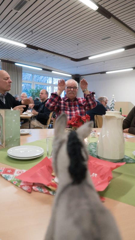Am Samstag vor dem 4. Advent lud der AGV Dortmund zu der diesjährigen Weihnachtsfeier. Vor dem Kaffeetrinken mit leckerem Christstollen wurde ein Gottesdienst zur Adventszeit gefeiert. In der Predigt stand der Esel wieder einmal im Mittelpunkt. Er war es der Maria nach Bethlehem und viele Jahre später Jesus nach Jerusalem trug. Was machte er zwischendurch? Zusammen mit dem barmherzigen Samariter den – auf den Weg zwischen Jericho und Jerusalem – überfallenen Mann transportieren und pflegen.