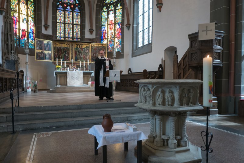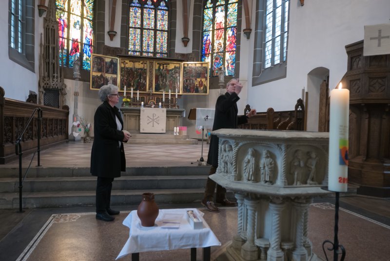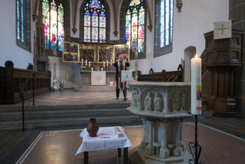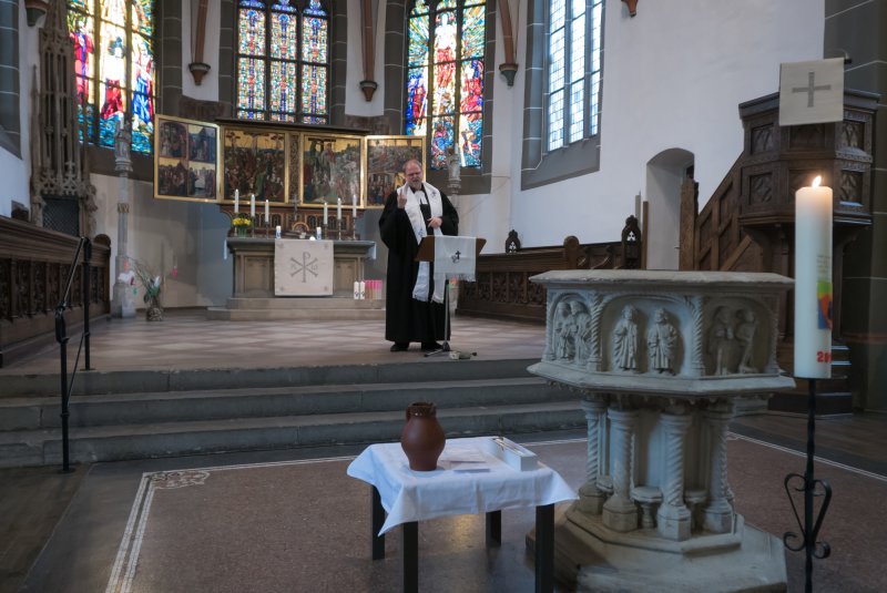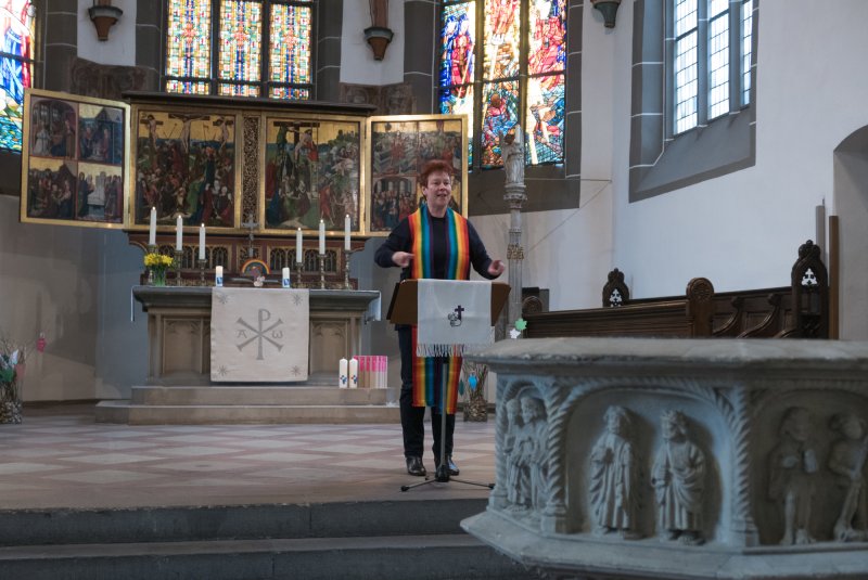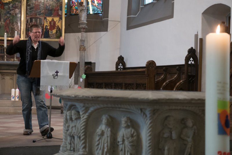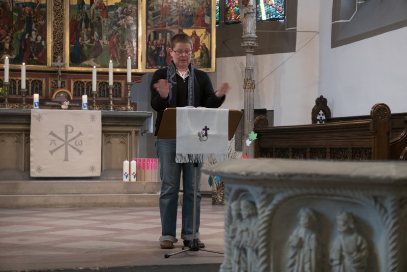 Wieder einmal war die St. Georg Stadtkirche in Lünen gut besucht, als dort am 2. Ostertag der regionale Ostergottesdienst gefeiert wurde. Steine hatten in diesem Gottesdienst eine wichtige Bedeutung. Steine, die das Herz bedrücken, Steine der Trauer und Einsamkeit, Steine des Hasses und der Gewalt. Steine der Hilflosigkeit und der Hoffnungslosigkeit. Mit seiner Auferstehung hat Jesus neues Leben möglich gemacht – schon in diesem Leben. Deshalb wurden die Steine unter das Kreuz Jesu gelegt – zum Zeichen dafür, dass es seit Ostern Hoffnung gibt – Hoffnung auf Wege aus der Trauer, Hoffnung auf Gemeinschaft, Hoffnung auf Frieden und Versöhnung. Die Steine – Leid und Elend – sind zwar noch da, aber sie müssen nicht mehr in die Verzweiflung führen. Wir können aufstehen für das Leben trotz aller Steine, die uns noch im Weg liegen.