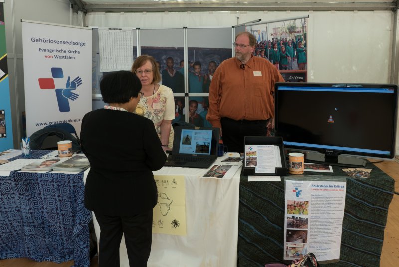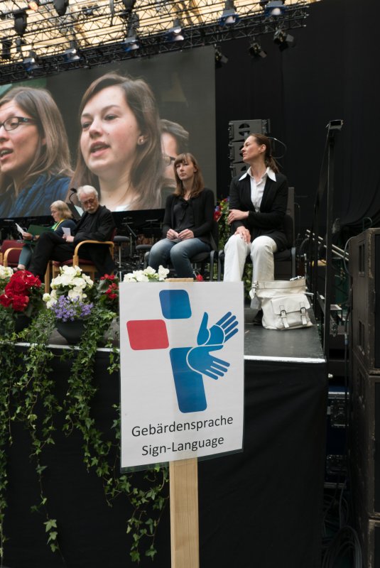 Am 6.-8. Mai traffen sich viele Christen aus ganz Westfalen und auch internationale Gäste im Gerry-Weber-Stadion in Halle/Westfalen. Dort wurde ein kleiner Kirchentag gefeiert. Auch die Gehörlosenseelsorge war natürlcih da. Nicht nur mit einem Stand auf dem Markt der Möglichkeiten sondern auch mit Gebärdensprach-Dolmetschern bei vielen Veranstaltungen und Diskussionen.