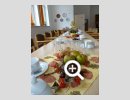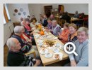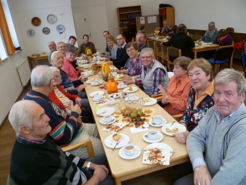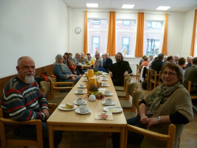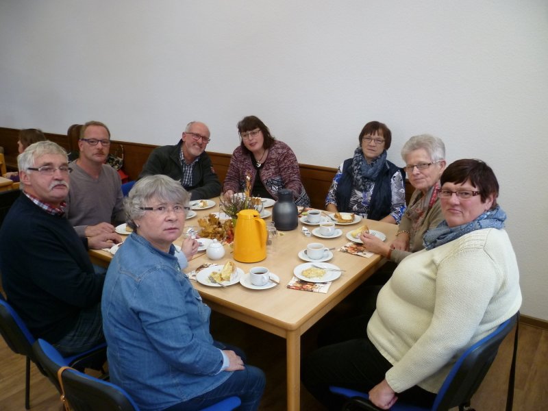 Beim Apfelfest vom GV Ochtrup nach dem Gottesdienst sind die Tische reich gedeckt. Es gibt reichlich Kaffee und Apfelkuchen in allen Variationen. Viele sind gekommen und genießen das leckere Gebäck und den schönen Nachmittag. Herzlichen Dank allen, die mit vorbereitet haben!