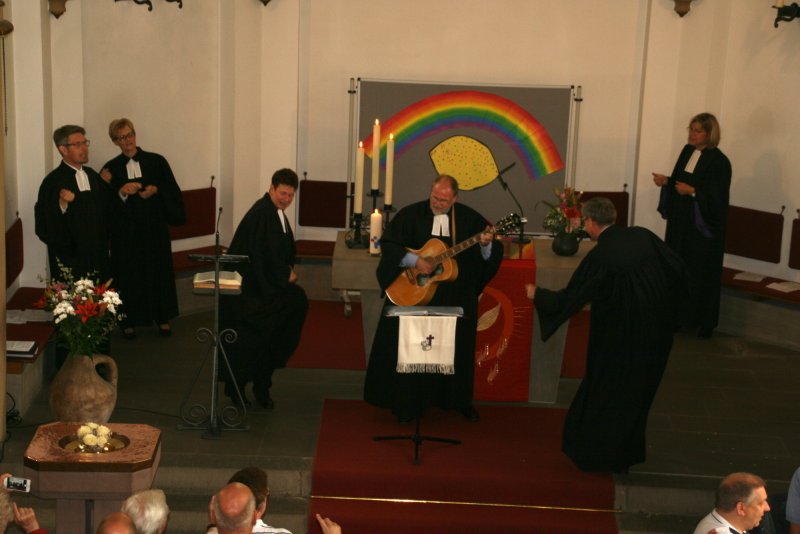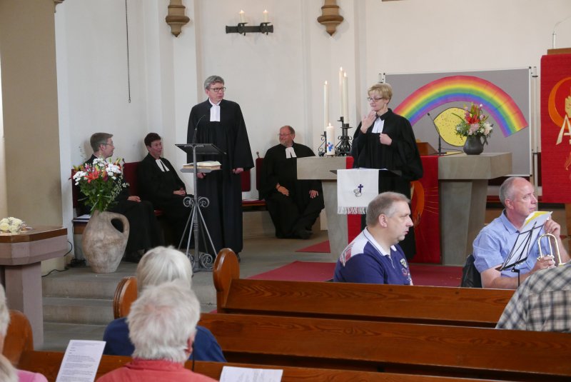 Sehr gut besucht war dieser Gottesdienst, zu dem Superintendentin Martina Espelöer und der Landesbeauftragte für Gehörlosenseelsorge in der EKvW, Pfr. Christian Schröder, die Grußworte sprachen. Neben der Ortsgemeinde Iserlohn-Oestrich und dem Ortspfarrer Uwe Schulte feierten etwa 50 auswärtige, vor allem gehörlose Gäste, mit. Sie waren aus dem westfälischen Umkreis mit Kleinbussen der Firma HospiTrans, Pkws oder der Bahn angereist. An vielen Beispielen wurde aufgezeigt, dass die vielen Begabungen Vielfalt bedeuten und nicht trennen. Die Aussage von 1. Kor. 12 (viele Glieder, aber nur ein Leib) aus der Lesung passte ganz wunderbar zu diesem besonderen Gottesdienst. Es wurden Gebärdenlieder „gesungen“, alle Wortbeiträge wurden simultan in Gebärdensprache übersetzt, natürlich auch das Vater Unser und der Segen. In der Predigt ging Pfrn. Christine Brokmeier auch kritisch auf den Begriff „Inklusion“ ein. Inklusion sei dann gut, wenn damit Teilhabe gemeint ist, wenn das Ziel der Inklusion ist, dass alle Menschen an allem teilhaben können. Aber Inklusion könne niemals heißen, dass die einen wie die anderen werden, dass Unterschiede ausgemerzt werden. Damit nehme man Menschen ebenso ihre Würde und ihre Einmaligkeit wie dadurch, dass man sie nicht teilhaben lässt.Die ganz eigene Atmosphäre eines Gebärdengottesdienstes war beeindruckend. Die Freude, dabei zusein, war allen anzumerken, besonders auch dem Vorbereitungsteam aus der Gehörlosenseelsorge: Pfrn. Christine Brokmeier, Pfrn. Susanne Kuhles, Pfrn. Sabine Kuklinski und Pfr. Hendrik Korthaus.