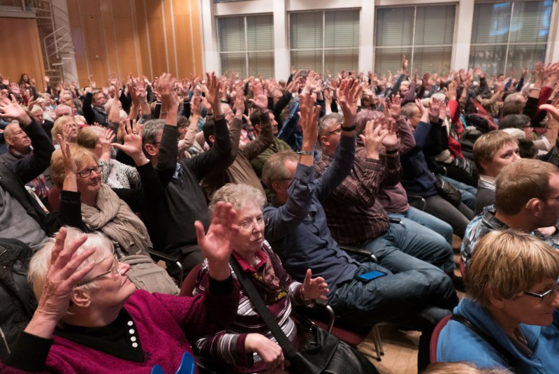 Am 29.10. feierten die westfälischen Gehörlosengemeinden ihren 8. Kirchentag in der Stadthalle Kamen. „beFREIT gestern – heute – morgen“ war diesmal das Thema. Eigentlich findet dieser Kirchentag alle vier Jahre statt, aber durch das Reformationsjubiläum wurde schon in diesem Jahr gefeiert. Trotz des Sturms und der vielen Ausfälle im öffentlichen Nahverkehr war die Halle bereits zum Eröffnungsgottesdienst gut gefüllt. Über 500 Besucher worden gezählt. Neben den bekannten Personen aus den Gemeinden ließen sich auch viele andere, vor allem jüngere, gehörlose Menschen aus ganz Westfalen und darüber hinaus sehen. Die Eröffnungsveranstaltung mit modernen Theater, Tanz und Gebärdenchor leitete den Tag ein. Grußworte aus dem Landeskirchenamt überbrachte Daniela Fricke. Im offenen Programm gab es viel zu sehen: Essen wie zu Luthers Zeiten, Informationen zur Entstehung und Übersetzung der Bibel, Pilgern wie Luther und der Reformationsaltar in Wittenberg waren Themen der Informationsstände. Daneben gab es auch einen Bücherstand und natürlich den Stand der westfälischen Gehörlosenseelsorge. Ein Fotowettbewerb wurde veranstaltet und man konnte sich selber zusammen mit Luther fotografieren lassen. Ebenso gab es eine Kinderbetreuung und einen Ruheraum. „Wenn sich im Gottesdienst 800 Hände in den Himmel strecken und Halleluja singen, bekomme ich eine Gänsehaut“ erzählte ein Besucher. Der Landesbeauftragte Christian Schröder dankte allen Mitarbeitern und meinte: „Für diesen Kirchentag haben wir dem Volke auf die Hände geschaut. Darum war die Begeisterung so groß!“