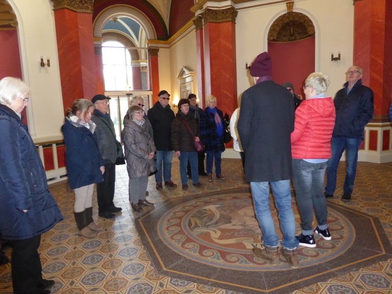 Im Februar traf sich die Gehörlosengemeinde zu einer besonderen Stadtführung, die uns auch in die Unterwelt von Bad Oeynhausen brachte. Der Stadtführer Christian Barmbeck erzählte viele interessante Geschichten aus der Zeit, als die Badehäuser und der Kurpark in Bad Oeynhausen gebaut wurden. Wer wusste, wie das Solewasser entdeckt wurde? Und wer kennt noch eine Kur, bei der man vor allem in der Badewanne sitzen musste? Und wer weiß, dass es früher im Kurpark eine Molkerei gab? 52 Appenzeller Kühe gehörten dazu, damit die Kurgäste frische schweizerische Milch bekamen. Das Badehaus I wurde im Stil einer antiken Villa gebaut. Hier gab es 52 Badewannen in kleinen Zellen. Das große Kurhaus hat den barocken Stil, und die Wandelhalle ist wie im alten Griechenland gebaut. Warum? Vor über 100 Jahren kannten Menschen keine Urlaubsreisen nach Italien oder Griechenland. Wenn sie dann zur Kur nach Bad Oeynhausen kamen, sollten sie sich fühlen zum Beispiel wie in Italien. Aus dem Kurpark ging es dann in die “Unterwelt”. Die Klosterstraße in der Fußgängerzone hat Tunnel. Ein besonderer Tunnel hat zwei große Hotels unter der Erde verbunden. Das Hotel Hohenzollernhof hatte eine Küche. Das gegenüberliegende Hotel Victoria hatte keine Küche. Darum mussten die Kellner den Tunnel unter der Straße benutzen und alles in das andere Hotel tragen: Das Essen, den teuren Wein, die Tischwäsche. Durch die Erzählung des Stadtführers wurde die alte Badestadt Bad Oeynhausen lebendig. Diese Führung war für alle sehr interessant. Wir haben viel Neues erfahren! Das war nur möglich, weil Elke Stefanie Fast sich bereit erklärt hatte, die Stadtführung zu übersetzen. Dafür danken alle sehr herzlich.