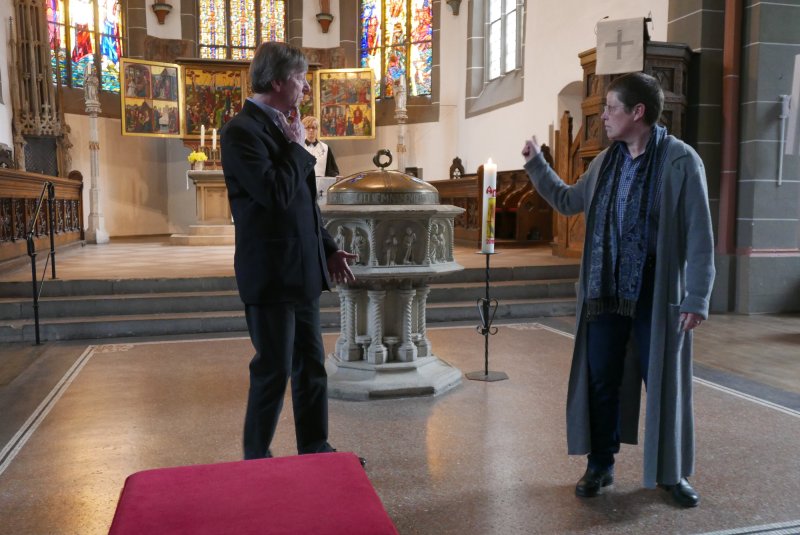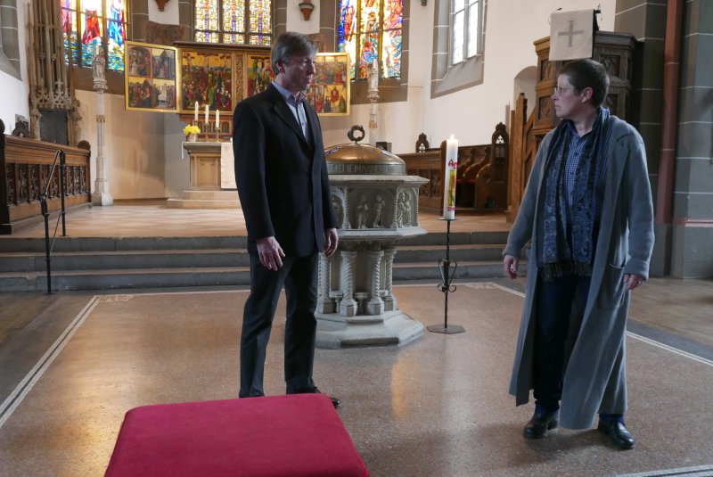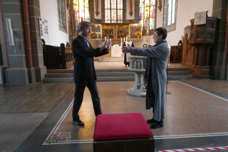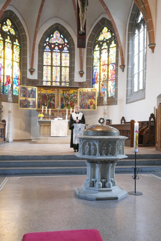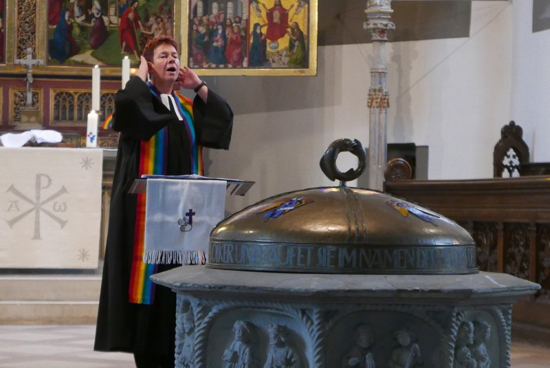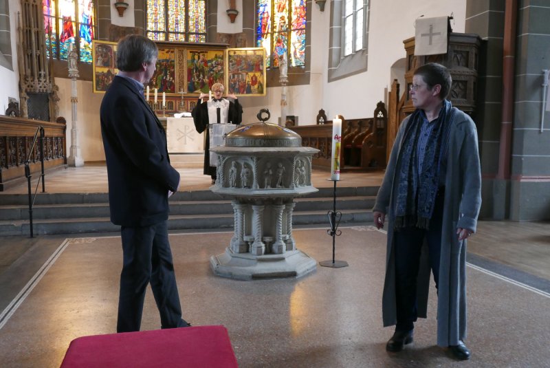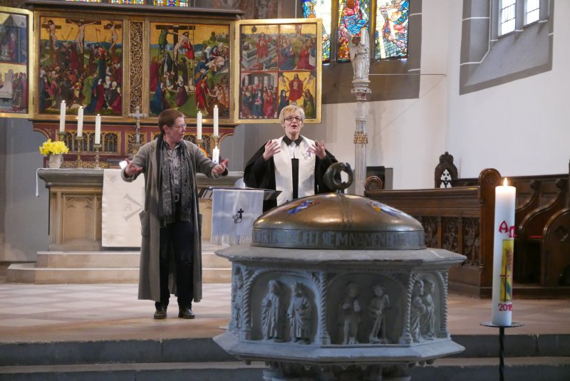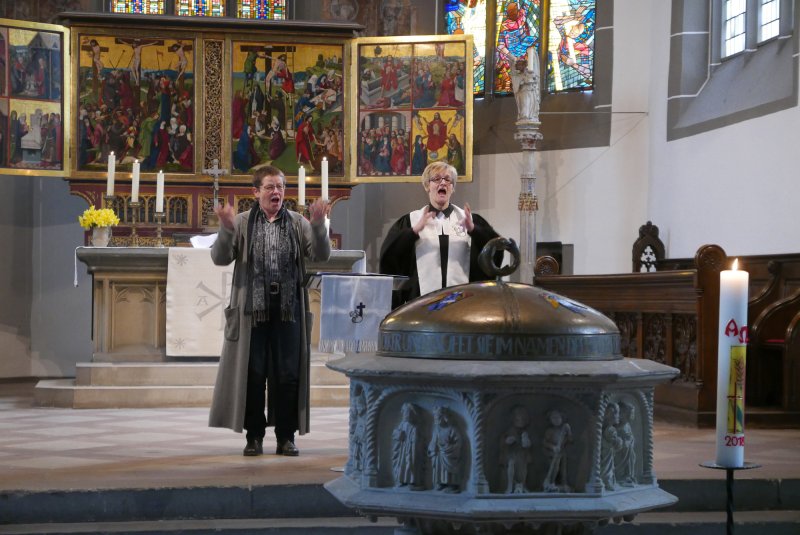 “Sackgasse?” Unter diesem Thema stand der Gottesdienst. Dazu gab ein Anspiel zur Osterbotschaft aus dem Johannesevangelium (Joh. 28, 1-10). Traurig stand Maria aus Magdala vor dem Grab Jesu. Jetzt ist alles aus, so mag sie gedacht haben. Umso mehr, als das Grab leer war und sie dachte, der Gärtner habe den Leichnam weggenommen. Doch dann kommt Jesus zu ihr, und sie erkennt in ihm den Auferstandenen.