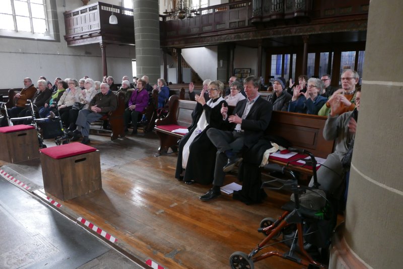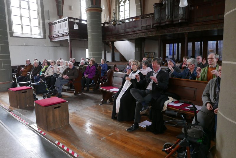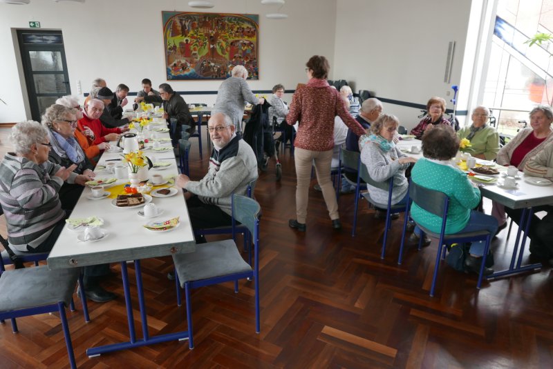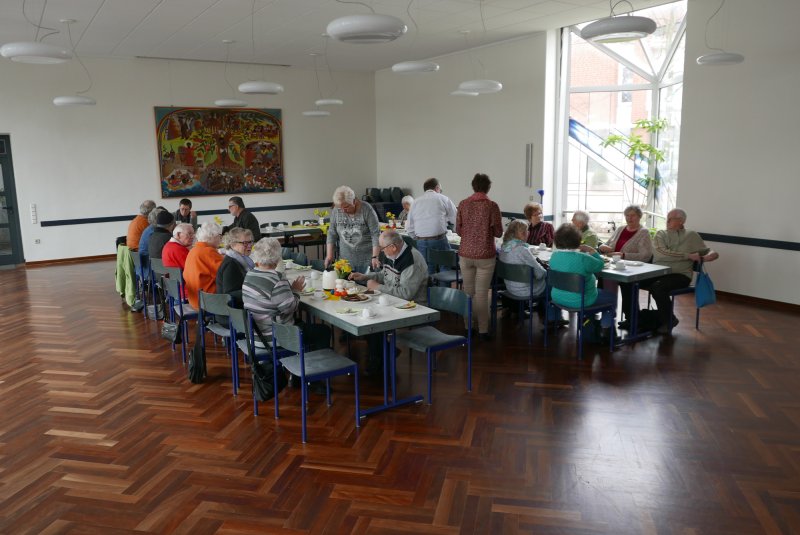 Nach dem Gottesdienst kam man im Gemeindehaus nebenan zu Kaffee, Kuchen und Plaudern zusammen. Dafür war zuvor von fleißigen Helfern alles vorbereitet worden. Bis zum späten Nachmittag ließen es sich dort alle gutgehen.
