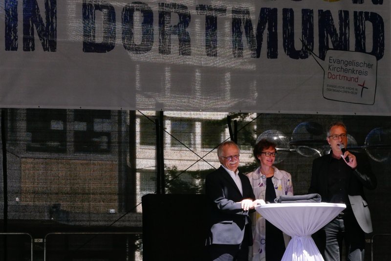 Am 5. und 6. Mai feierte Dortmund. Diesmal nicht der BVB sondern die ganze Innenstadt. DortBunt hieß das Fest auf allen Straßen und Plätzen. Und es gab wirklich ein buntes Programm bei herrlichen Sonnenschein. Der Stand des Stadverbandes der Gehörlsenverein Dortmunds wurde unterstütz von der Gehörlosenseelsorge in der evangelischen Kirche Dortmund. Neben vielen Gemeindegliedern waren die Gemeindesprecherin aus Dortmund Brigitte Würfel und der Gemeindesprecher aus Lünen Ulrich Hoffmeister sowie Pfarrer Hendrik Korthaus anwesend. Eine kleine Vorbereitung für den Kirchentag, der 2019 nach Dortmund kommt.