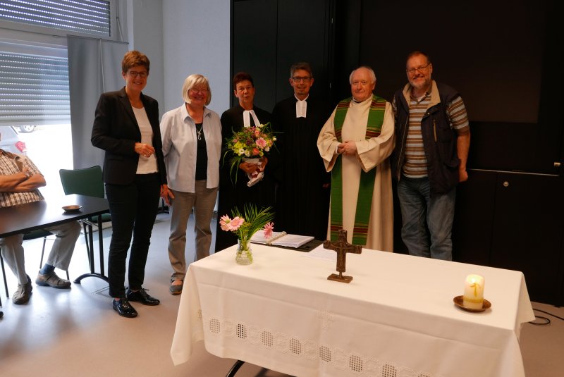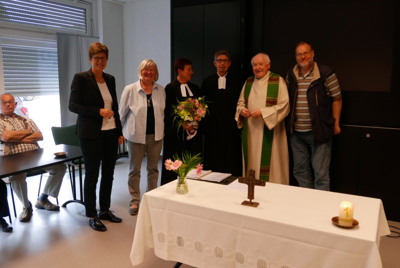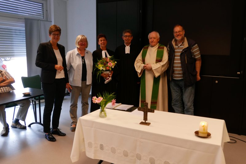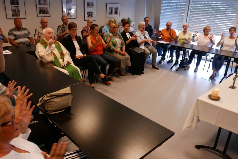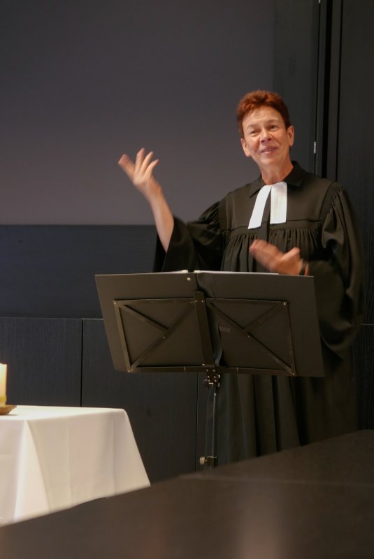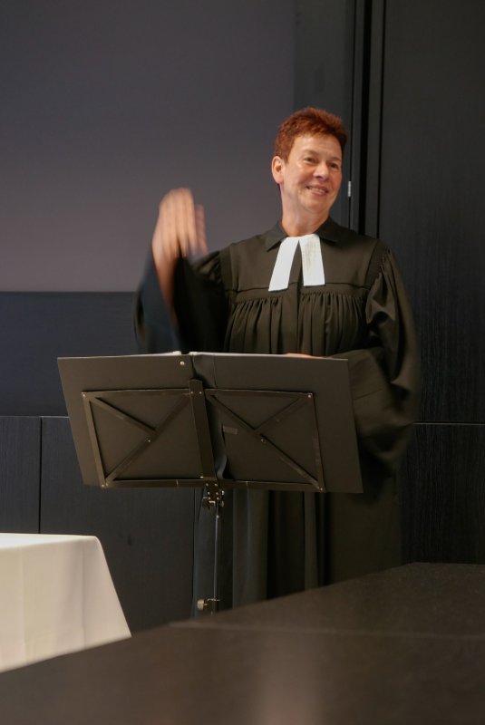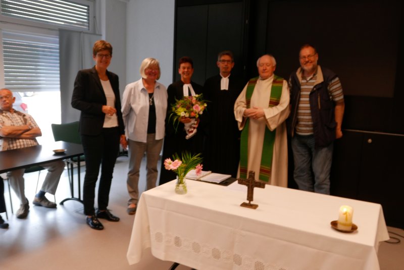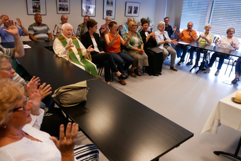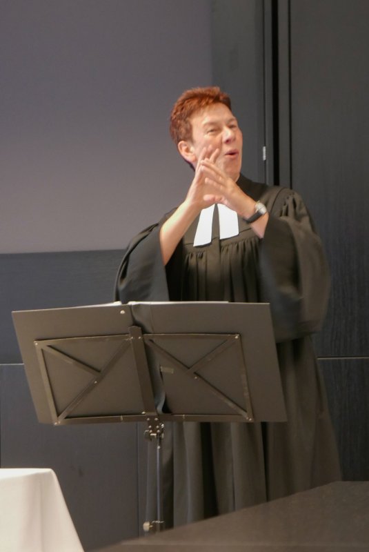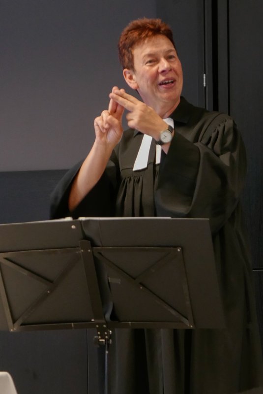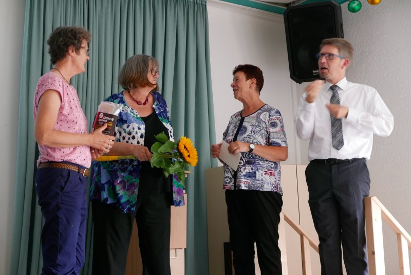 Dank- und Grußworte nach dem Kaffeetrinken hielten unter anderem die Superintendentin des Kirchenkreises Recklinghausen, Pfarrerin Katrin Göckenjan, sowie Pfarrer Norbert Schulze-Raestrup, der ehemalige Diözesanpräses für die Gehörlosenseelsorge im Bistum Münster, die Vorsitzende des Vestischen Gehörlosenvereins Helga Grzelka zusammen mit dem 2. Vorsitzenden des Vereins, Hermann Riekötter, Prädikant Detlef Gersmann und ehemalige Kolleginnen aus dem Kirchenkreis Bochum, wie z.B. Pfarrerin Martina Haeseler.