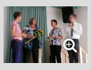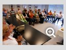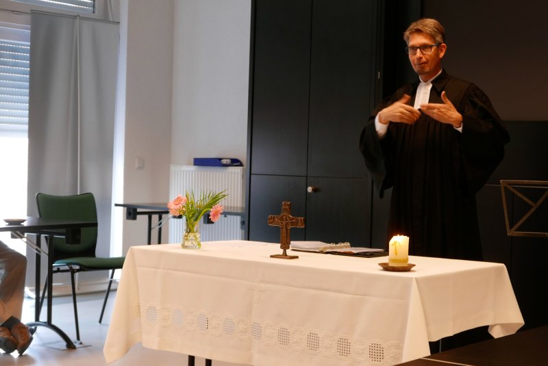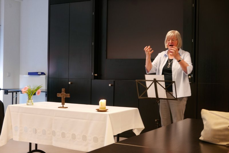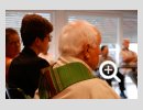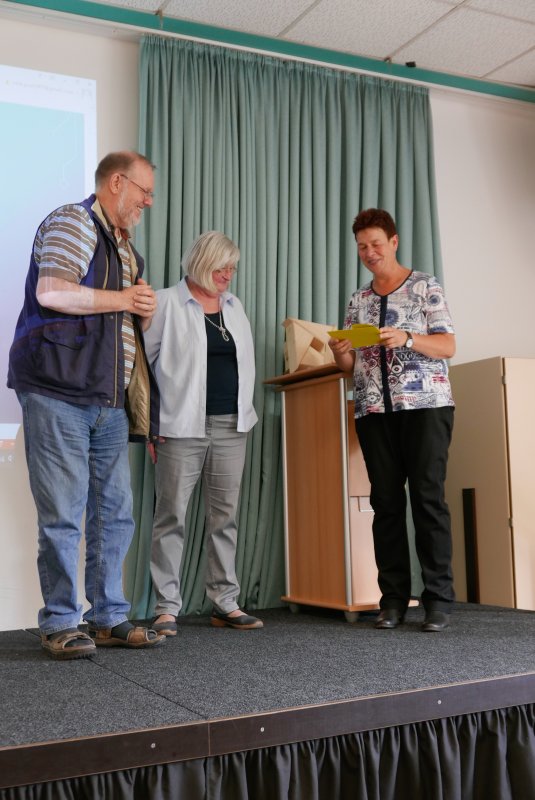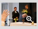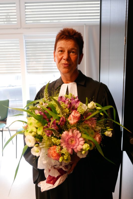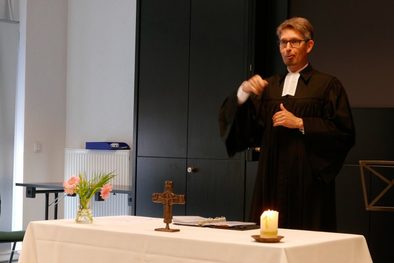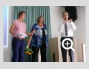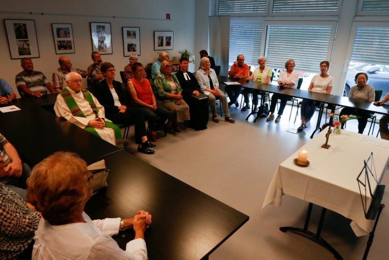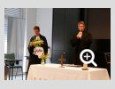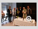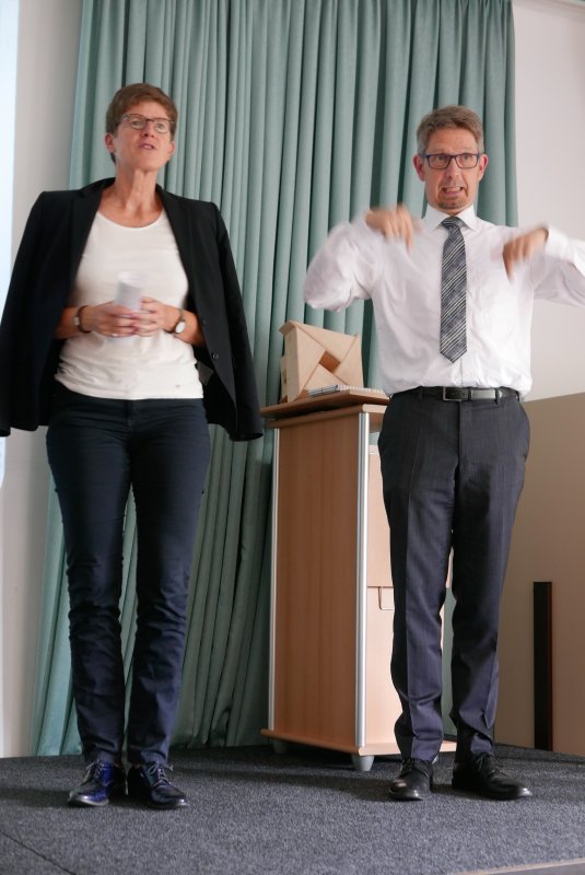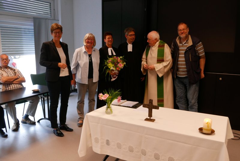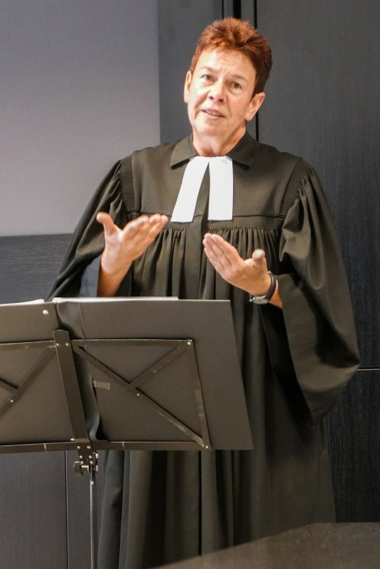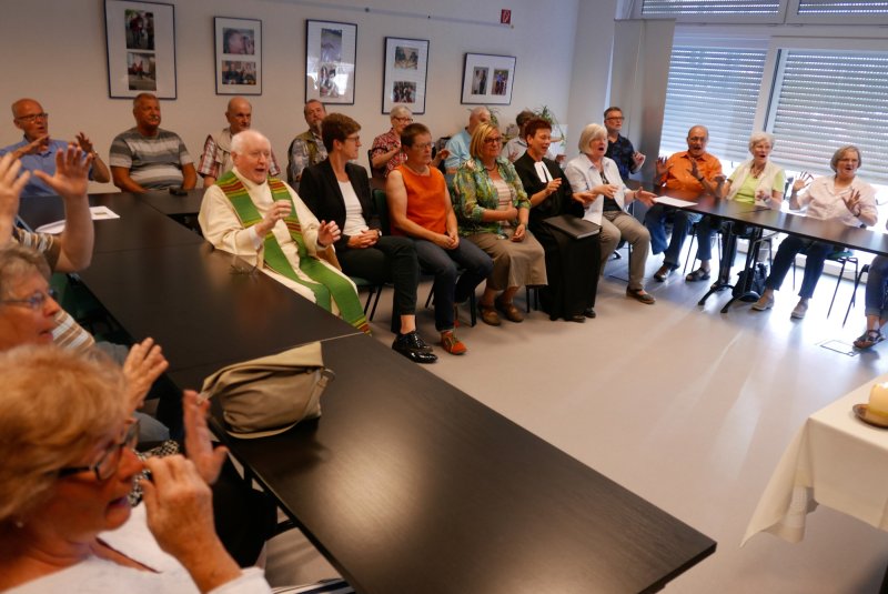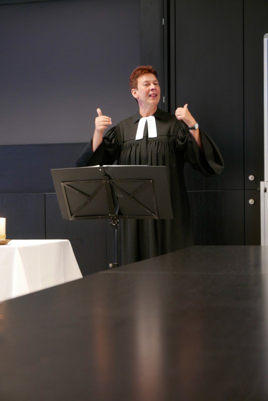 Dank- und Grußworte nach dem Kaffeetrinken hielten unter anderem die Superintendentin des Kirchenkreises Recklinghausen, Pfarrerin Katrin Göckenjan, sowie Pfarrer Norbert Schulze-Raestrup, der ehemalige Diözesanpräses für die Gehörlosenseelsorge im Bistum Münster, die Vorsitzende des Vestischen Gehörlosenvereins Helga Grzelka zusammen mit dem 2. Vorsitzenden des Vereins, Hermann Riekötter, Prädikant Detlef Gersmann und ehemalige Kolleginnen aus dem Kirchenkreis Bochum, wie z.B. Pfarrerin Martina Haeseler.