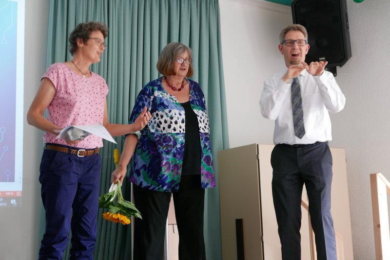 Ab dem 1. Juni 2018 hat Pfarrerin Sabine Kuklinksi einen neuen Auftrag in der „hörenden Gemeinde“ in Gronau. Seit Sommer 1997 war sie in der Gehörlosenseelsorge im Kirchenkreis Recklinghausen tätig und seit 2002 zusätzlich für die Gehörlosenseelsorge im Kirchenkreis Bochum zuständig und im Ev. Seelsorgezentrum Bochum tätig. Zu ihrer Verabschiedung am 6. Juli im Gehörlosenzentrum in Recklinghausen kamen zahlreiche Gehörlose aus der Umgebung, aber auch Kollegen aus der evangelischen und katholischen Gehörlosenseelsorge. Der landeskirchliche Beauftragter für Gehörlosenseelsorge in der EKvW, Pfarrer Christian Schröder, dankte Pfarrerin Kuklinski für Ihre Arbeit in den letzten 21 Jahren und verabschiedete sie mit guten Wünschen für den Neuanfang in Gronau.