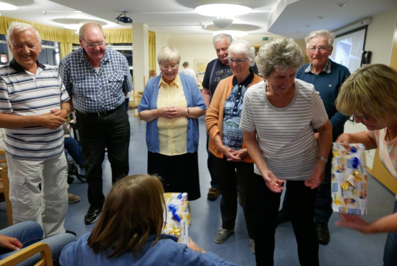 Nach langer Vorankündigung und Vorbereitung war es am 01.09. endlich so weit: 26 gehörlose Senior*innen aus mehreren Städten Westfalens sowie die drei Gehörlosenseelsorger*innen Eleonore Hauschild, Hendrik Korthaus und Christine Brokmeier und die zusätzliche Begleiterin Andrea Schu verließen am frühen Morgen dieses Tages ihr Zuhause und machten sich auf den Weg zum Bahnhof. Ziel war zunächst Emden Außenhafen. Von dort ging es mit der Fähre weiter – zur Nordseeinsel Borkum. Dort hieß es noch einmal einsteigen: Die Inselbahn brachte die Gruppe vom Hafen zum Borkumer Kleinbahnhof. Weiter ging es zu Fuß zur Unterkunft im Gästehaus Victoria. Und bald schon konnten alle ihren Hunger und Durst mit Köstlichkeiten eines reichhaltigen Buffets stillen. Nach einem sich anschließenden geselligen Abend mit Vorstellung des Programms der nächsten Tage fielen alle müde, aber zufrieden mit dem 1. Tag der Reise in ihre Betten.