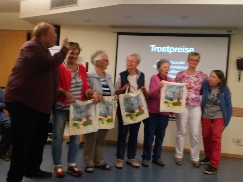 Am Freitag kamen abends zum letzten Mal die Borkum-Fahrer*innen im Gruppenraum zusammen – zum Abschlussabend mit Andacht und Preisverleihung. Einige hatten nämlich die Quizfragen, die Pfr. Korthaus vorbereitet hatte, während der Woche beantwortet.