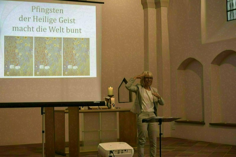 Am Pfingstsonntag kamen über 30 Personen aus den ostwestfälischen Gehörlosengemeinden und darüber hinaus zusammen, um das Pfingstfest zu feiern. Den Gottesdienst gestalteten Sabine Schlechter, Pfarrerin Heike Kerwin und Pfarrer Christian Schröder.