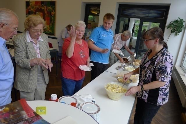 Am 10. August war das Gemeindehaus hinter St-Georg-Stadtkirche in Lünen wieder einmal so richtig voll. Aus Lünen und den benachbarten Gemeinden kamen fast 40 Menschen um das alljährliche Grillfest hier miteinander zu feiern. Neben den Gemeindesprecherinnen Monika Eul und Brigitte Hamacher sowie dem Ehepaar Sprenger war es wieder einmal Ulrich Hoffmeister am Grill zu verdanken, dass es reibungslos klappte. Würstchen, Fleisch und Salate schmeckten ebenso gut wie auch mal ein Bierchen zwischendurch. Ein fröhliche Runde!