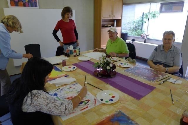 Neben dem Schnupperkurs in Gebärdensprache gab es Kurse zur richtigen Ernährung und zum Schreinern sowie Malen mit Acrylfarben. Auch ein Dart-Turnier fand regen Anklang. Für das leibliche Wohl war mit Pizza, Nudeln und Kuchen sowie Kaffee und Getränken bestens gesorgt. Die Teilnehmer präsentierten nachmittag stolz ihre tollen Ergebnisse. Christine Pollmeier, die den Malkurs leitete, denkt schon weiter und möchte wieder einen Malkurs für Gehörlose anbieten. Wer hat Lust mit zu machen?