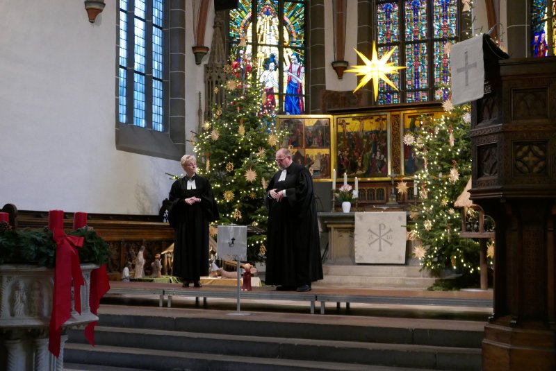 „Gott schenkt dir einen Engel“ – so das Thema des diesjährigen Weihnachtsgottesdienstes – gehalten von Pfr. Hendrik Korthaus und Pfrn. Christine Brokmeier. Unzählige Geschichten der Bibel erzählen davon, dass Gott seinen Menschen immer er wieder Engel schickt. So erzählt es auch die Weihnachtsgeschichte. „Fürchtet euch nicht! Denn euch ist heute der Heiland geboren!“ So verkündet es ein Engel den Hirten auf dem Felde. Hier und auch in anderen biblischen Geschichten wird deutlich: Engel sind Boten Gottes, und Gott schickt sie mit einem ganz bestimmten Auftrag: Sie sollen den Menschen neue Kraft schenken, sie trösten und ermutigen. Das ist das Geschenk der Engel. Von Schutzengeln hingegen erzählt die Bibel nichts. Und es ist ja auch so: Schutz gibt es nicht immer und überall im Leben. Aber Ermutigung und Trost gibt es. Auch von Menschen für Menschen. Ja, auch Menschen können einander Engel sein und werden – dann, wenn sie einander trösten, stärken und ermutigen.