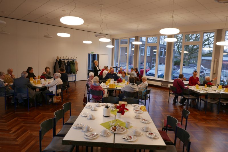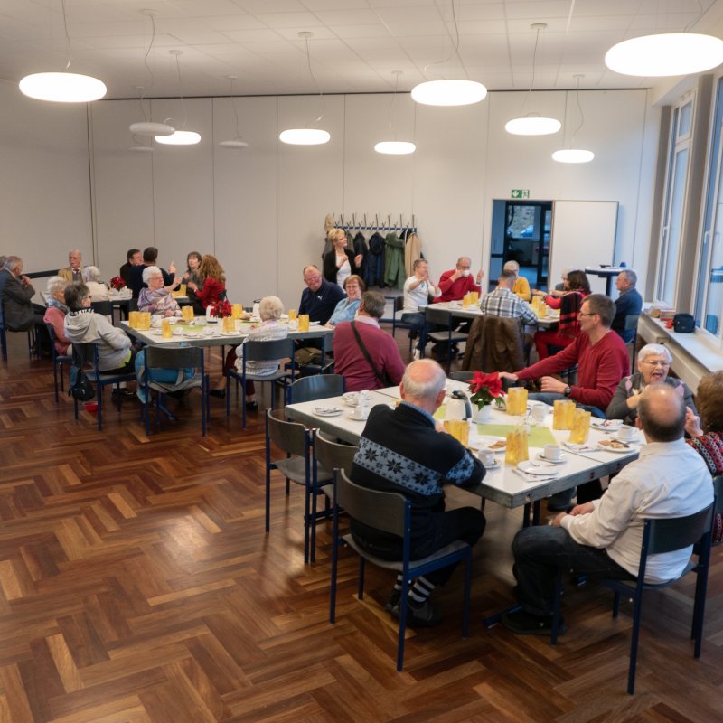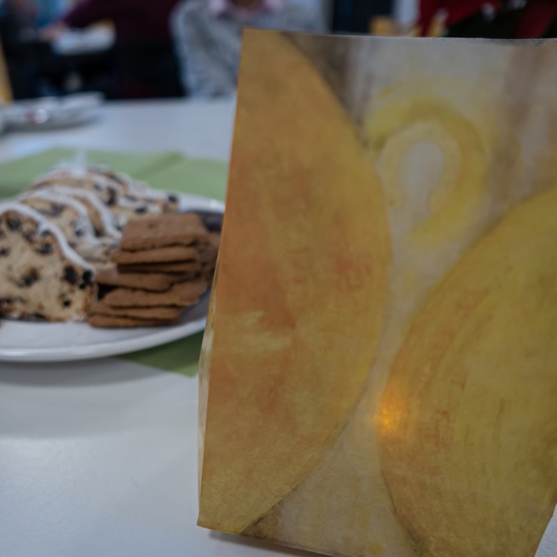 Nach dem Gottesdienst ließen sich die Gottesdienstbesucher*innen samt Pfarrer und Pfarrerin im Gemeindehaus nebenan Kaffee und Kuchen schmecken. Ein ganz besonderer Dank an Dieter Würfel, der in diesem Jahr besonders im Einsatz war, da die Helfer*innen der anderen Jahre durch Krankheit oder andere Gründe dieses Mal nicht dabei waren. Aber wie gut: Andere Anwesende halfen spontan mit. Auch Ihnen ein herzliches Dankeschön! So wurde die Botschaft und der Wunsch des Gottesdienstes gleich konkret: Die Feiernden wurden einander zu Engeln!