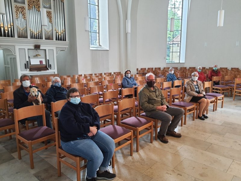 Ach wenn es kein Kaffeetrinken und keinen Kuchen im Gemeindehaus gab, waren alle froh, sich mal wieder zu sehen. Und wir freuen uns schon auf den Gottesdienst im Juli!