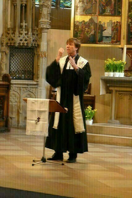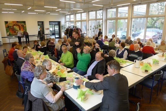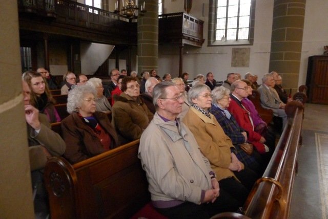 Wie nun schon seit einigen Jahren feierten am Ostermontag die Gehörlosengemeinden des westfälischen Ruhrgebiets wieder einen regionalen Ostergottesdienst. Schon vor dem Gottesdienst waren viele Helfer am Werk: Ein Mitglied einer Gehörlosengemeinde hatte selbst gebackenen Kuchen mitgebracht, die Tische wurden eingedeckt, es wurde Kaffee gekocht und die Kirche vorbereitet. Um 14.30 Uhr fanden sich alle in der St. Georg Stadtkirche neben dem Gemeindehaus ein. Mittlerweile war die Zahl der Anwesenden auf 60 gestiegen. So war die Kirche gut gefüllt, als Pfarrer Hendrik Korthaus zum Ostergottesdienst begrüßte. Außer ihm hielten den Gottesdienst Pfarrer Martin Ruhmann, Pfarrerin Christine Brokmeier und der Laienprediger Detlef Gersmann. Im Mittelpunkt des Gottesdienstes standen Gedanken zum Foto einer Skulptur an einem Waldrand in Bad Kissingen mit dem Titel „Ausblick“. Die Skulptur ist ein Kreuz aus Edelstahlplatten, aus denen durch ein Schweißverfahren eine Christusfigur herausgeschnitten worden ist. Dadurch ist dieses Kreuz durchgängig und durchsichtig geworden. Je nach dem, auf welcher Seite der Skulptur der Betrachter steht, sieht er entweder den Wald oder eine weite Landschaft. Durch den Auferstandenen die Welt zu sehen – dazu wurden die Gottesdienstbesucher eingeladen. Seit Ostern können Menschen die Welt durch Ihn sehen. Was sehen sie dann? Eine Welt, die zwar auch an Ostern noch voller Leid und Not ist, aber auch eine Welt, die durch den Auferstandenen gehalten und gerettet ist. So wie der Betrachter der Skulptur seine Perspektive wechseln kann, wenn er sich vor oder hinter die Skulptur stellt, so lädt Ostern dazu ein, die Lebens-Perspektive zu wechseln: Weg vom alleinigen Blick auf Leid und Not hin zum Blick auf eine Welt, die vom Auferstandenen gehalten und gerettet ist und für die es darum eine Hoffnung gibt. Eine Hoffnung, die mit dem Tod nicht endet. Eine Hoffnung, die darauf vertraut, dass nach dem Tod ein neues, ewiges Leben beginnt. Mit der Stärkung durch das Heilige Abendmahl endete der Gottesdienst. Anschließend gab es Gemeindehaus reichlich Kaffee und Kuchen und ausgiebige Kommunikation. Wiederum fleißige Helfer sorgten dann dafür, dass das Geschirr im Gemeindehaus wieder gesäubert an seinen Platz kam. Allen Helfern und Mitwirkenden ein herzliches Dankeschön!