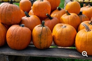 Hier sind Kürbisse, Kartoffel und Gemüse.