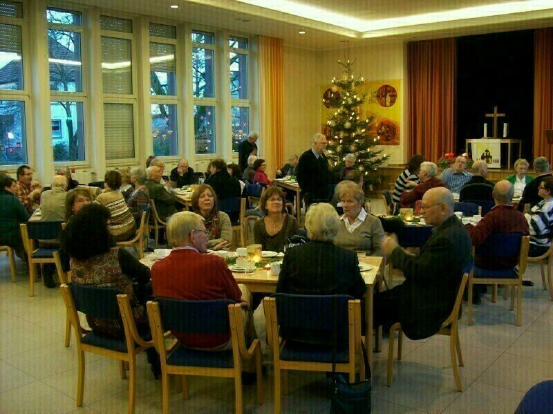 Anschließend sind wir in den Saal des Gemeindehauses gegangen. Dort hatten einige aus der Gehörlosengemeinde Tische schön weihnachtlich geschmückt. Es gab Kaffee und Kuchen und natürlich viel Unterhaltung. Am Schluss hat die Gemeindesprecherin Sabine Bruns eine Geschichte erzählt und uns mit guten Wünschen für das neue Jahr 2013 verabschiedet.