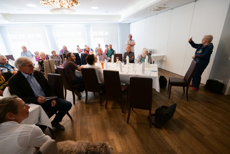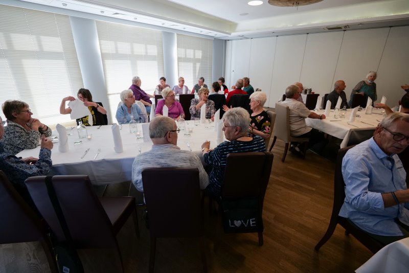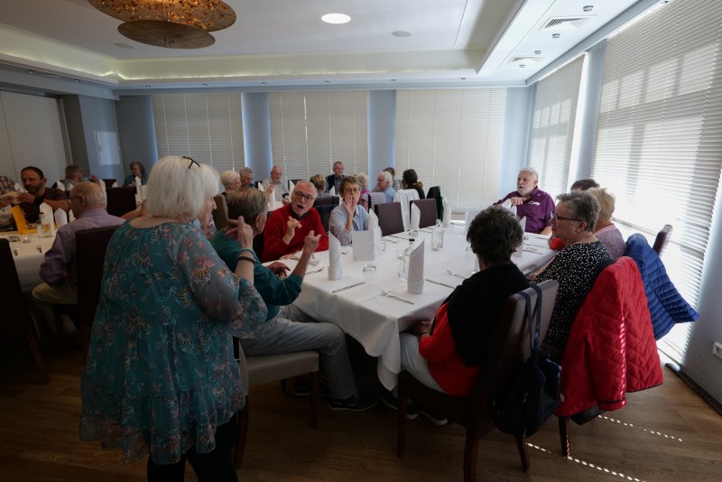 Am 2. September wurde gefeiert! Der Allgemeine Gehörlosen Verein Dortmund wurde 135 Jahre alt. Mitglieder und Ehrengäste wurden in den „Freischutz“ in Schwerte geladen. Und es kamen viele. Pfarrer Hendrik Korthaus gratulierte der 1. Vorsitzenden Brigitte Würfel und der Kassiererin Brigitte Piering und bat um Gottes Segen für die Feier und den Fortbestand des Vereins. Nach Grußworten und der Ehrung der treuen Mitglieder gab es ein leckeres Mittagessen vom Buffet. Satt und zufrieden wurde ein Verdauungsspazierung für das Gruppenfoto unternommen. Nach Kaffee und Kuchen fuhren dann alle mit guter Laune nachhause.