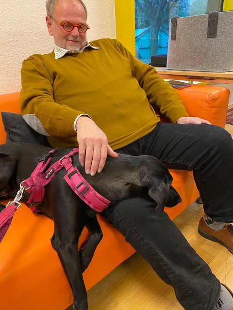 Danach musste er sich den vierbeinigem Gast zuwenden.