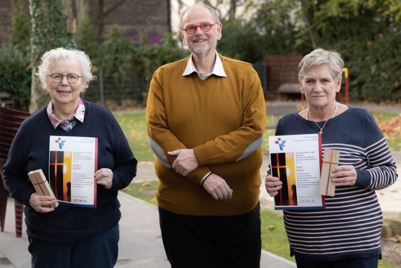 Irene Kallus unterstützt nun Brigitte Würfel, die schon in der 4. Amtsperiode ist. Pfarrer Hendrik Korthaus überreichte auch ihnen ein Lichtkreuz und eine Urkunde.