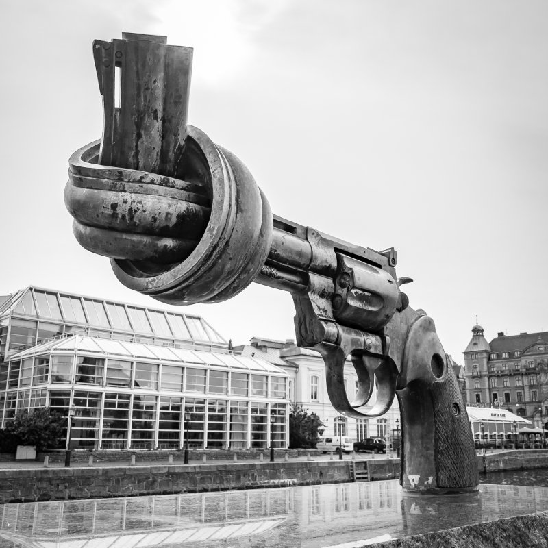 Skulptur „Non-Violence“ (keine Gewalt) auch „Knotted Gun“ (Verknotete Waffe)