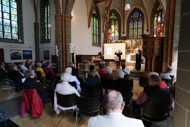 35 Personen aus der ganzen Region waren in der Kirche zusammengekommen, unter ihnen auch ein Mann aus Japan. Der Gottesdienst wurde von den Gemeindesprecherinnen Daniela Trendel und Silvia Cichy sowie Pfarrer Hendrik Korthaus und Pfarrerin Christine Brokmeier gestaltet. Texte und Gebärdenlieder verkündeten die Osterbotschaft. Auch wenn dies in diesem Jahr nicht so leicht fiel. Denn der Krieg in der Ukraine lastet schwer auf der Seele. An einer Wüstenpflanze wurde dies deutlich gemacht. Die Rose von Jericho ist eine braune und trockene Pflanze. Wie vertrocknet fühlt sich manchmal auch die Seele – dann, wenn das Leben schwer ist.