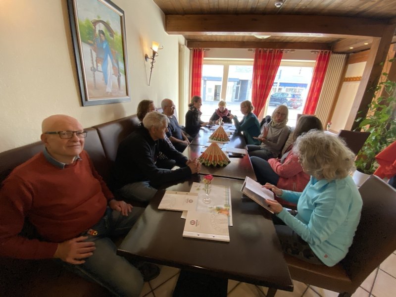 Die letzte Pilgerwanderung in diesem Jahr am 5. November führte uns von Gütersloh nach Rheda. Dieser Abschnitt des Jakobsweges war erfreulich kurz, nur 13 Kilometer. Das war aber auch ganz gut. So konnten wir nach einer kleinen Andacht in der Stadtkirche in Rheda bei einem gemeinsamen Mittagessen die Pilgerwanderung für dieses Jahr abschließen.
