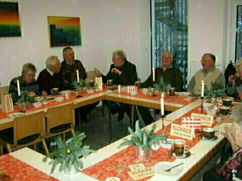 Einen Tag nach Nikolaus feiert die Gehörlosengemeinde Wittgenstein ihre Weihnachtsfeier. Der Gehörlosenverein Wittgenstein ist zwar aufgelöst, aber für die Gehörlosen gibt es weiter 1 mal im Monat Gottesdienst und Versammlung, jetzt aber in Bad Berleburg, nicht wie früher in Erndtebrück. Aber zur Weihnachtsfeier treffen wir uns wieder in Erndtebrück. Diesmal neu: Im „Klön-Eck“. Das ist eigentlich Nord-deutsch. Es bedeutet „Plauder-Ecke“. Es ist das Begegnungs-Cafe der Diakonie. Dort ist es sehr gemütlich. Die Tische sind schön geschmückt. Nach der Andacht gibt es eine lecker Kuchen-Auswahl vom Bäcker Birkelbach. Der Bürgermeister, Herr Völkel, erzählt eine Geschichte voller Sprichwörter und der Superintendent erzählt eine Geschichte von einer Katze, die zeigt: Was bedeutet Trost?: Die Katze wartet auf uns, auch wenn es spät wird. Sie freut sich, wenn wir endlich kommen. Sie springt uns auf den Bauch und gibt uns einen Katzenkuss, weil sie uns liebt. Sie verzeiht auch, wenn wir sie einmal wegstoßen, weil wir ihre Nähe nicht ertragen. So ist auch Gott: Er wartet auf uns, freut sich auf uns, liebt uns und verzeiht uns, wenn wir uns einige Zeit von ihm abwenden. Das ist unser Trost! Eine tolle Geschichte! Nach diesen Geschichten plaudern wir alle fröhlich und der Superintendent bedient uns sogar selbst mit Kaffee und Tee. Eine besondere Feier!