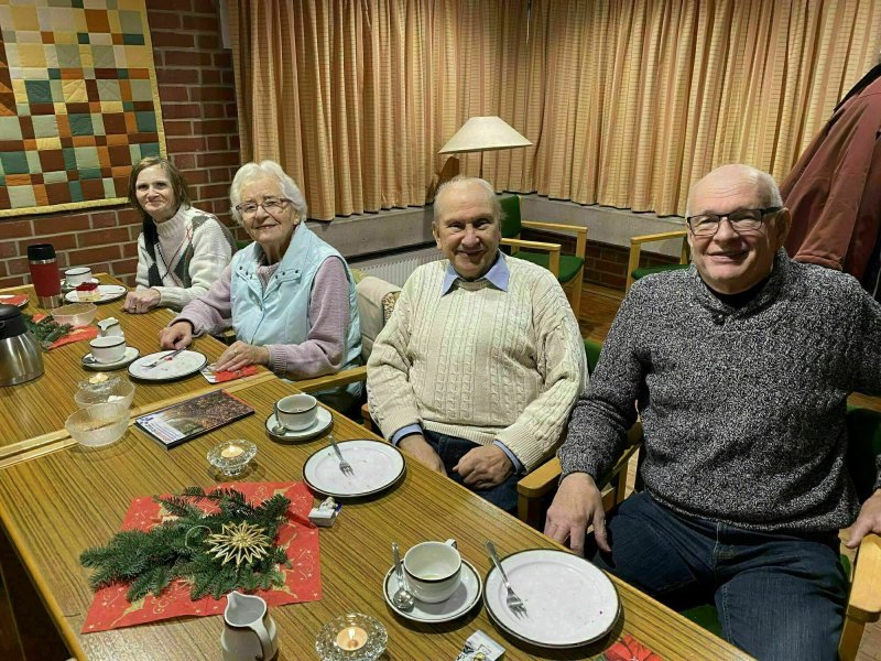Normalerweise feiern wir ja im großen Saal im Gemeindehaus. Aber inzwischen ist das Heizen zu teuer. Darum konnten wir in einen kleineren Raum umziehen, was uns alle sehr freute, denn der war viel wärmer als der Saal.