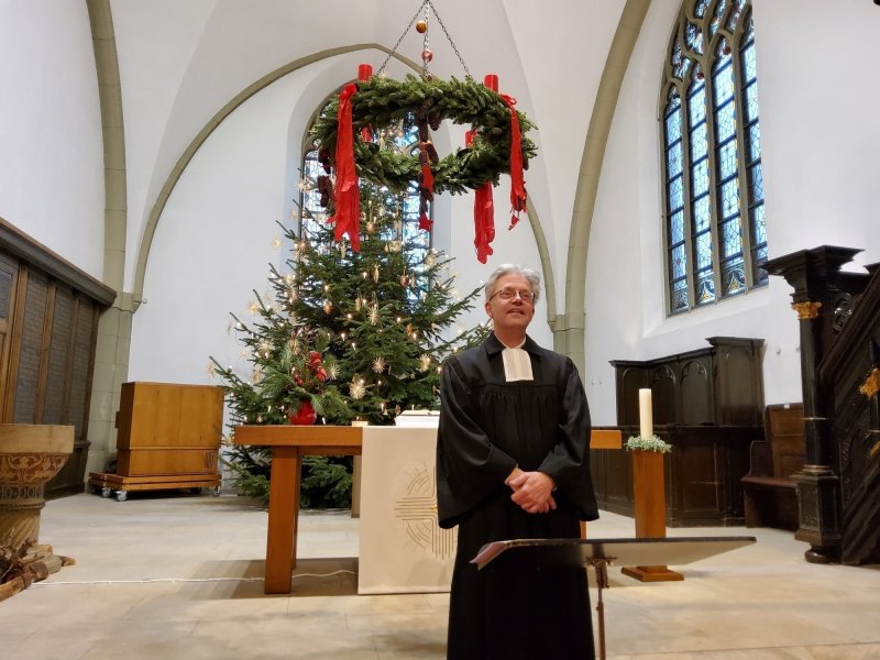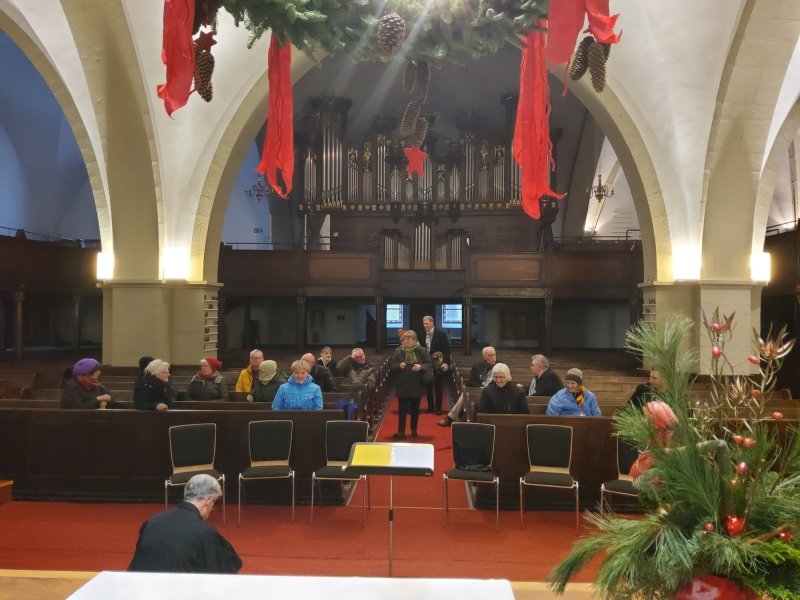 Erlöserkirche am Markt in Detmold statt. Zum Gottesdienst waren 27 Personen anwesend, darunter Kirchenrat Treseler vom Lippischen Landeskirchenamt sowie Herr Schüte, stellvertretender Bürgermeister der Stadt Detmold. Im Gottesdienst wurde die Weihnachtsgeschichte gebärdet und die Andacht mittels eines Zollstocks erläutert. Es ging um Gottes langem Weg zu uns, um den Wanderstock für Josef und Maria, um die Geburt im Stall und um die Krippe. Und der Stern zeigt uns: Jesus ist das Licht der Welt. Pfarrer Sundermann hat alles klar und verständlich erklärt.