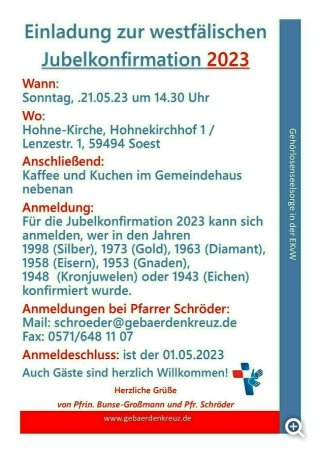 *Einladung zur westfälischen Jubelkonfirmation 2023*++